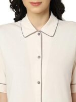 De nachtjapon is voorzien van een doorknoopsluiting, wat betekent dat je deze gemakkelijk kunt openen en sluiten. Dit maakt het aankleden en uitkleden een fluitje van een cent. De stof is zacht en soepel, en omhult je huid in zachtheid voor een goede nachtrust.