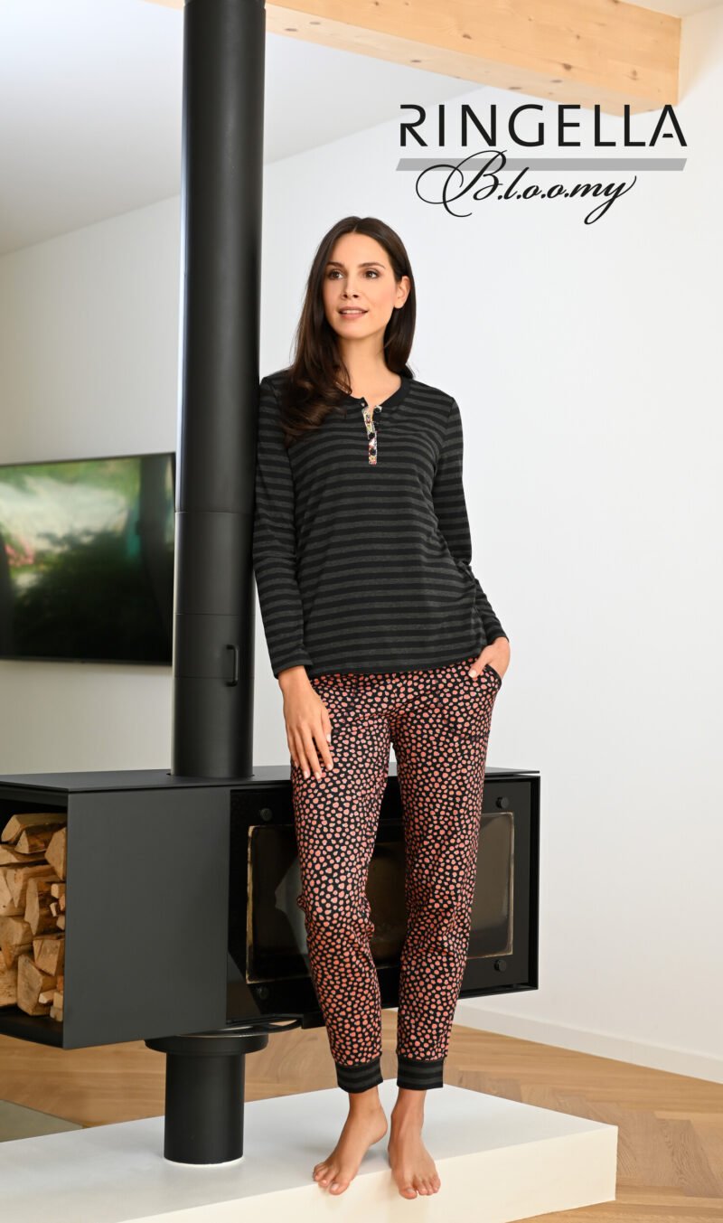 De Bloomy-serie van Ringella staat bekend om zijn hoogwaardige materialen en aandacht voor details. Dit shirt is gemaakt van zacht en comfortabel materiaal dat perfect is voor een goede nachtrust. Het heeft een klassieke pasvorm met lange mouwen en een ronde halslijn.