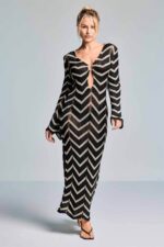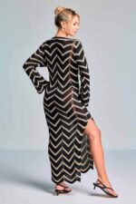 De zwarte kleur geeft de jurk een tijdloze en luxe uitstraling, waardoor je haar moeiteloos combineert met je favoriete bikini of badpak. Ideaal als strandjurk, maar ook prachtig voor een ontspannen lunch of wandeling langs de boulevard.